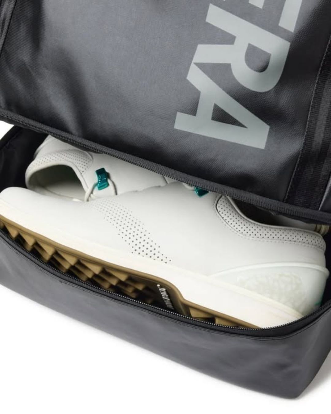 + Ngăn đựng giày: Nằm ở đáy balo với lớp vải co giãn tách ngăn chính với ngăn giày để đảm bảo vệ sinh và giữ dung tích gốc khi không sử dụng, ngăn đựng giày có thể giúp bạn chứa giày dài lên tới 30cm, phù hợp cho cả những bạn thích đi bốt quân đội hoặc giày moto.