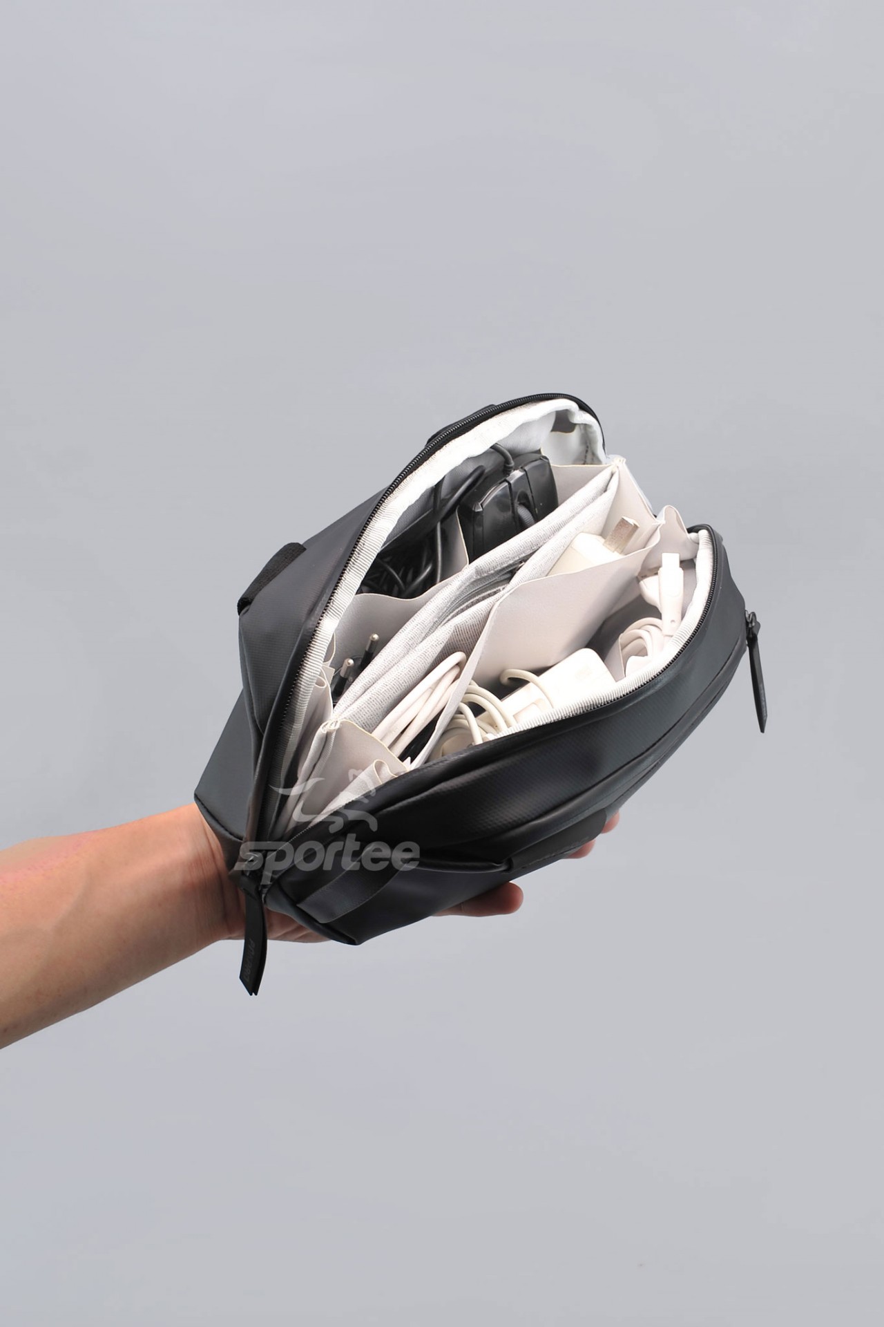 - Thiết kế ngăn bên trong với cấu trúc xếp xen kẽ Origami giúp sắp xếp đồ đạc gọn gàng, đựng thẻ nhớ, điện thoại, sạc và nhiều vật dụng điện tử khác một cách ăn khớp.