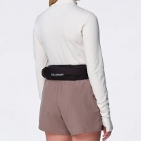 - Dù có thiết kế mỏng, Salomon Pulse Belt vẫn đủ không gian để mang theo 1-2 bình nước mềm dung tích khoảng 500 ml. Điều này giúp người chạy dễ dàng bổ sung nước trong các buổi chạy dài mà không cần mang balo hay vest cồng kềnh. Khi không mang bình, ngăn chứa sẽ tự co lại nhờ vải đàn hồi, giữ cho đai luôn gọn gàng. Ngoài các ngăn chính, Pulse Belt còn có các dải đai chéo đàn hồi ở mặt ngoài, cho phép cố định áo khoác mỏng, găng tay, khăn nhỏ hay gậy trekking...
